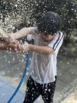一方で、暑さに負けないよう楽しい活動も盛りだくさん!屋外では水遊びを行い、子どもたちの歓声が響き渡りました。水しぶきを浴びながら友達と笑い合う様子は、夏ならではの思い出となりました。さらに、バーベキュー大会も開催。炭火で焼いたお肉や野菜を囲み、みんなで「おいしい!」と頬張る時間は、子どもたちの絆を深める貴重な機会となりました。