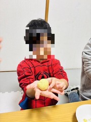 サツマイモボールを丸める工程では、「ぼくやるね」「じゃあ次お願い!」と声を掛け合いながら、順番を守って協力して取り組むことができました。