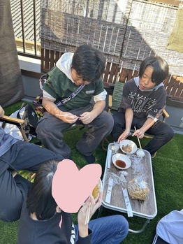 まずは、みんなが楽しみにしていたバーベキューを実施しました。焼き上げたお肉や野菜の香りが広がると、子どもたちの表情も一段と明るくなり、「おいしい!」と嬉しそうに頬張る姿がたくさん見られました。友達と食べる食事は格別で、楽しい会話も弾み、温かな交流の時間となりました。