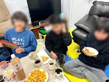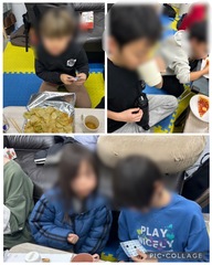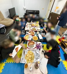 ピザやお菓子を囲んで楽しく食事をし、その後はビンゴ大会で大盛り上がり。番号が呼ばれるたびに歓声が上がり、笑顔と笑い声に包まれたひと時となりました。