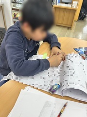 また、楽しい活動の合間には、宿題にも真剣に取り組みました。集中出来る様に図書館を利用したり、分からないところを職員と確認しながら、集中して机に向かう姿から、成長を感じることができました。